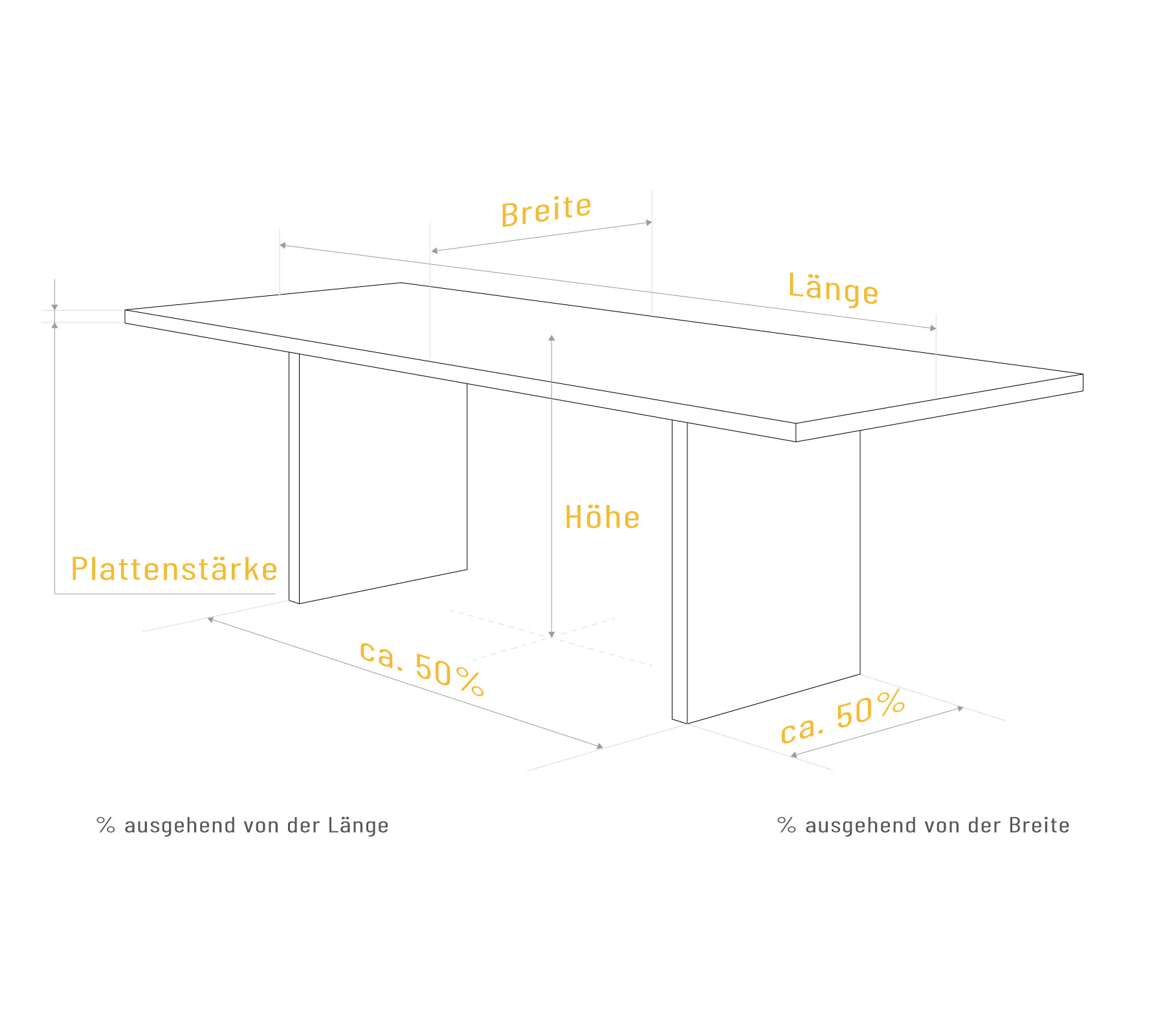 Diese vorteilhafte Konstruktion unseres Esstisches bietet Ihnen die optimale Beinfreiheit um mit Ihrer Familie und Freunden gemütlich beisammen zu sitzen. Die leicht schrägen Tischbeine mit Ihren weichen und abgerundeten Details sind nicht nur optisch ein Augenschmeichler, sondern bieten genügend Stabilität für die massive Holzplatte. Bei uns können Sie ganz unkompliziert Ihren eigenen passgenauen Esstisch konfigurieren. Finden Sie unter zahlreichen Hölzern und Steinen Ihren persönlichen Favoriten. Dank der unzähligen Ausstattungsvarianten bleiben keine Wünsche offen. Produktbilder können von Ihrer Konfiguration abweichen, da nicht alle Parameter abgebildet werden können. Zur besseren Vorstellung fordern Sie bitte eine Visualisierung an.