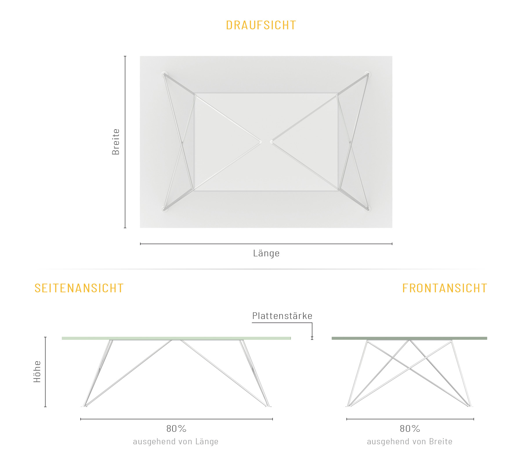 - Tischgestell aus Stahl oder Edelstahl