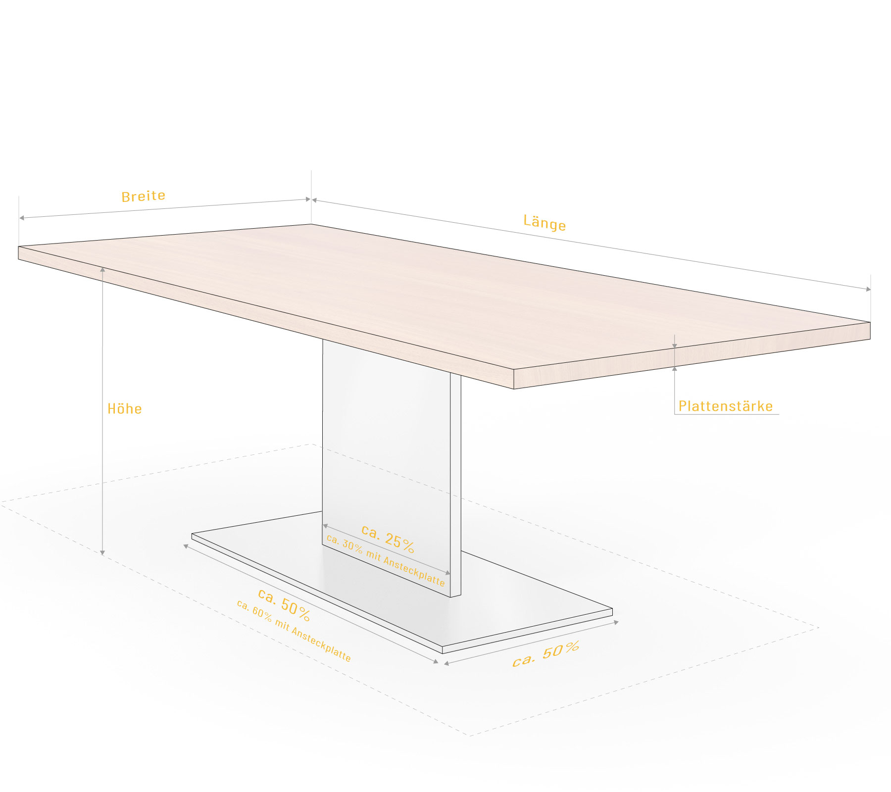 Eine Vergrößerung des Tisches ist durch wählbare Ansteckplatten möglich. Entscheiden Sie sich für 1 oder 2 Ansteckplatten für Ihr Modell und bleiben Sie so bequem flexibel bei der Vergrößerung Ihres Tisches.