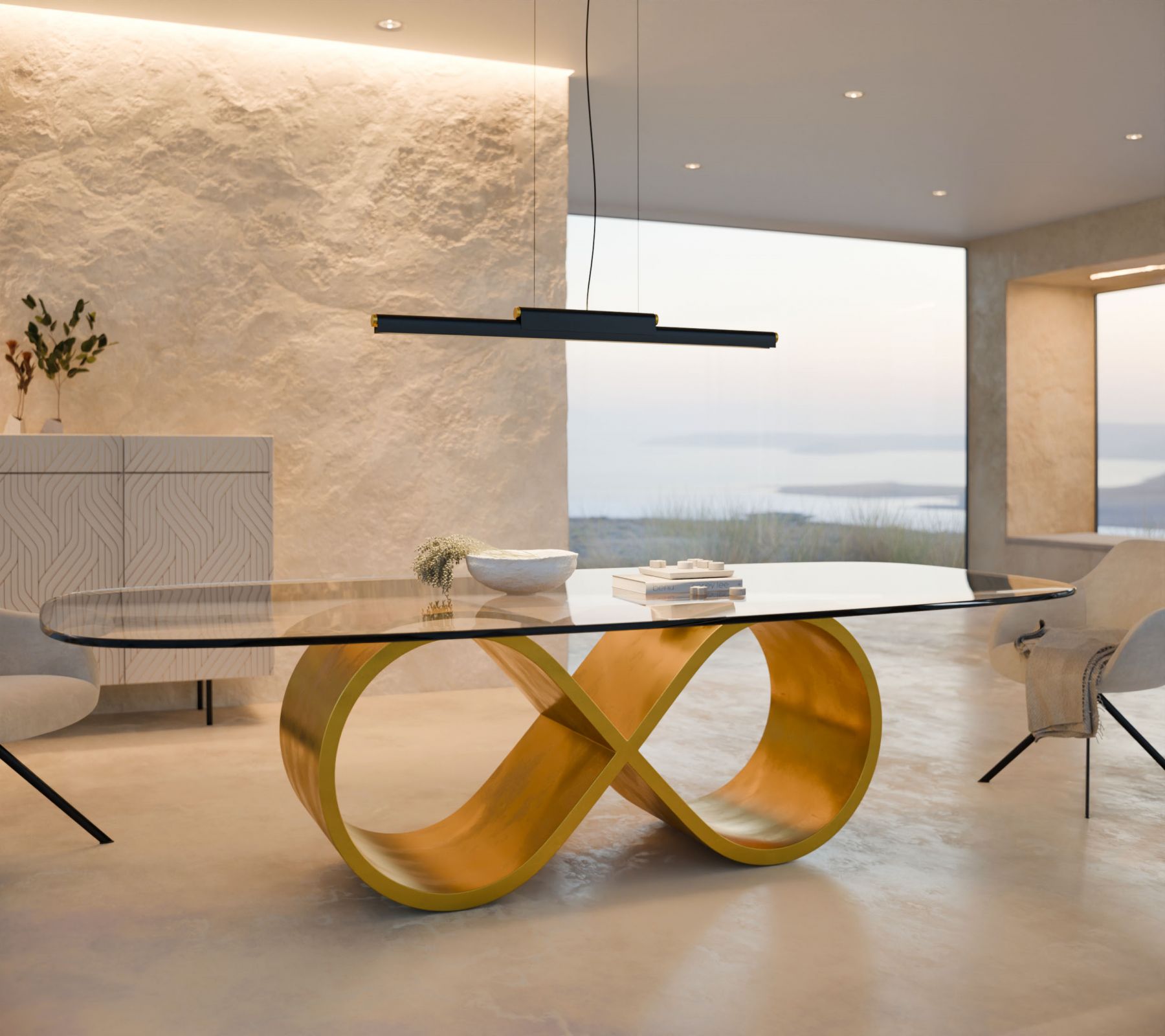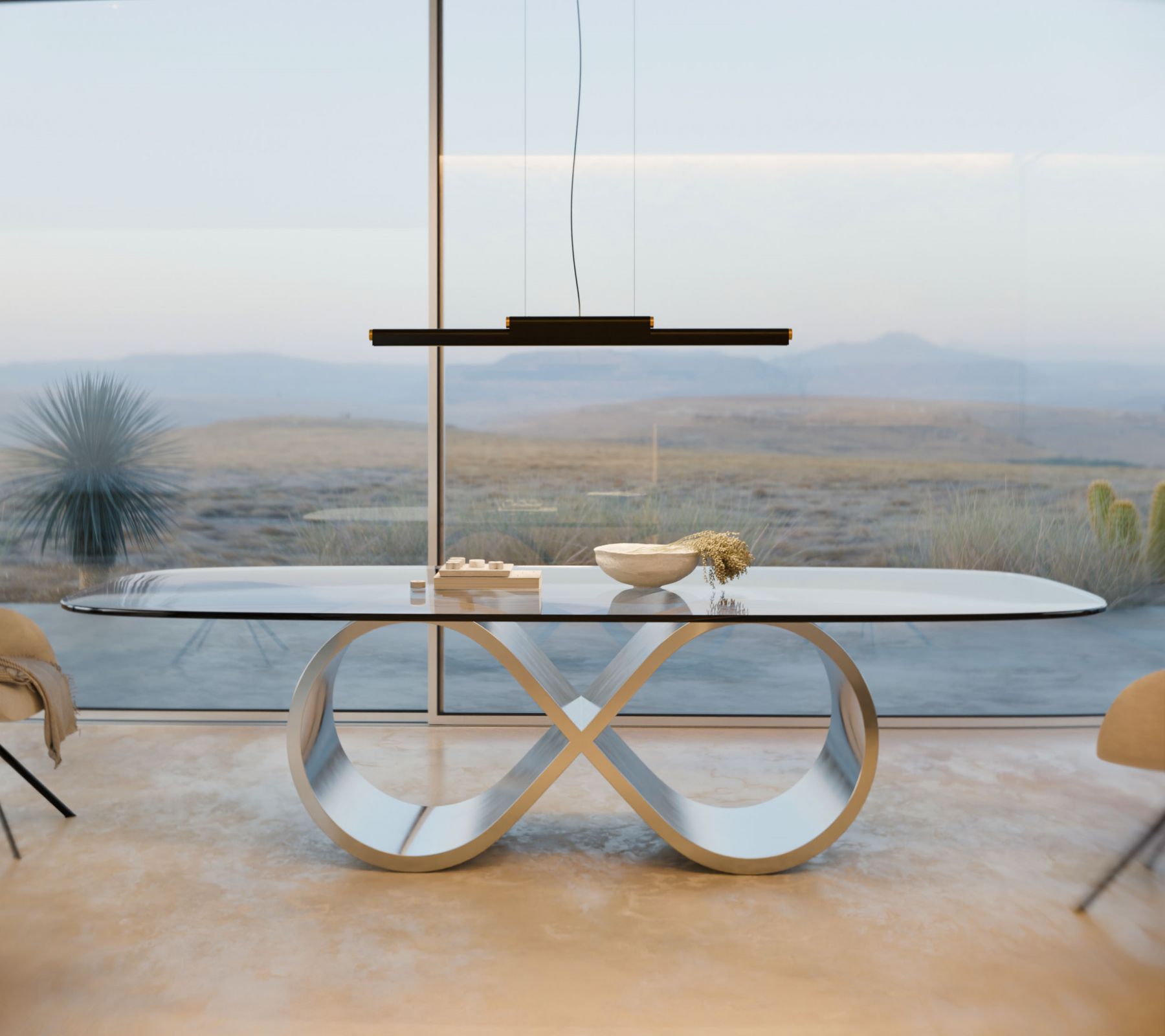 Der einzigartige Infinity-Tisch ist mit seiner außergewöhnlichen Form ein echter Hingucker. Ein massives Gestell trifft auf eine zarte Glasplatte - das ist Lifestyle pur! Die starke und stabile Optik ist ideal für Liebhaber des modernen Designs. Durch Charakter und Klasse wird dieser Tisch Sie, ihre Familie und Gäste beeindrucken. Edelstahl und Sicherheitsglas, vereint in Ihrem Esstisch in höchster Güte. Als Highlight können Sie das Glas in verschiedenen Ausführungen bestellen - somit heben Sie sich ab und können ihn farblich an ihren Wohnraum anpassen. Produktbilder können von Ihrer Konfiguration abweichen, da nicht alle Parameter abgebildet werden können. Zur besseren Vorstellung fordern Sie bitte eine Visualisierung an.