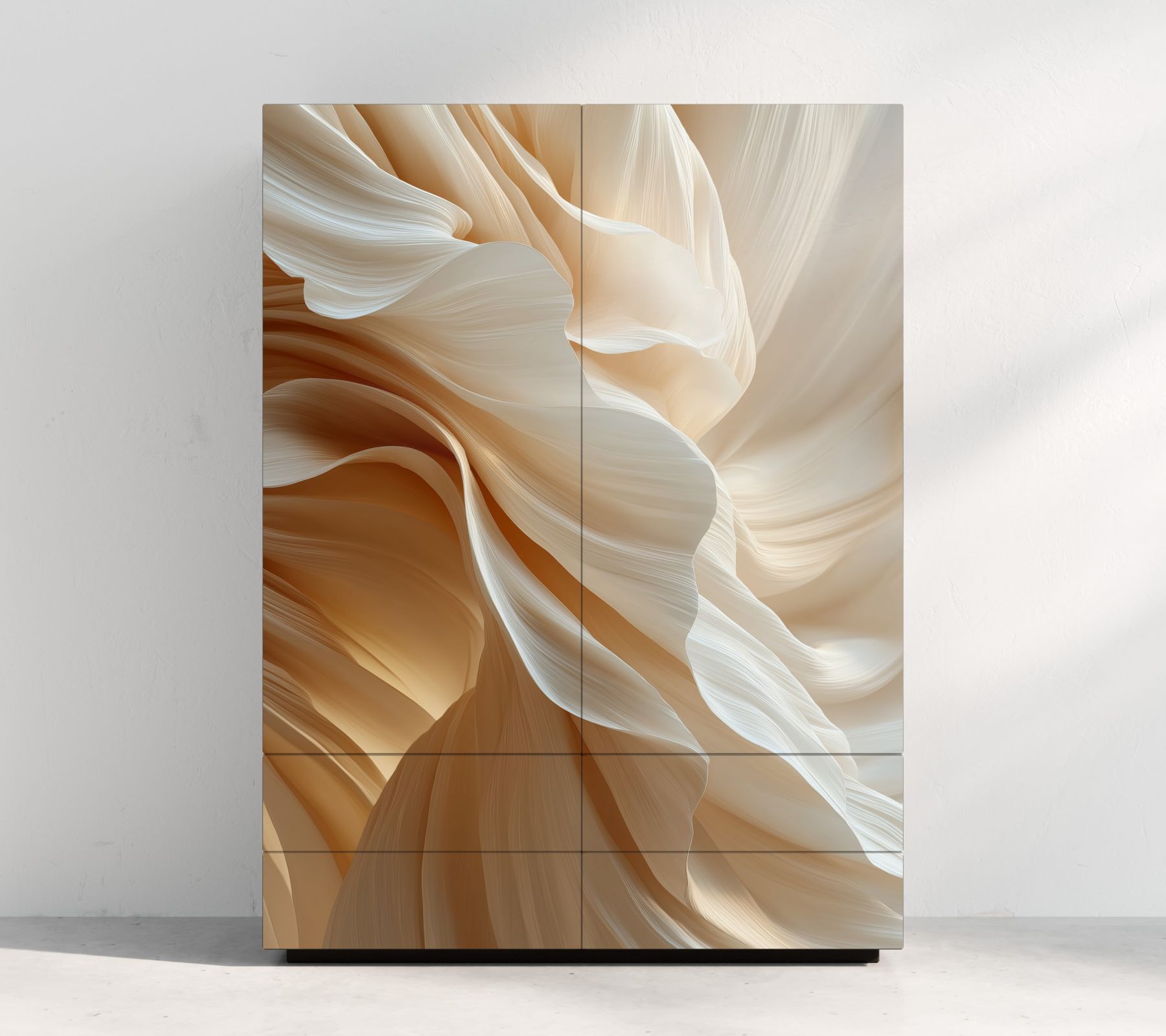 Dieses Highboard mit dem eindrucksvollen Motiv „Wood Wave“ überzeugt durch eine naturgetreue Darstellung und eine kraftvolle Präsenz. Ob als Kleiderschrank im Kinderzimmer oder als stilvolles Sideboard im Schlafzimmer – dieses nach Maß konfigurierbare Möbelstück ist ein echtes Statement mit Charakter.