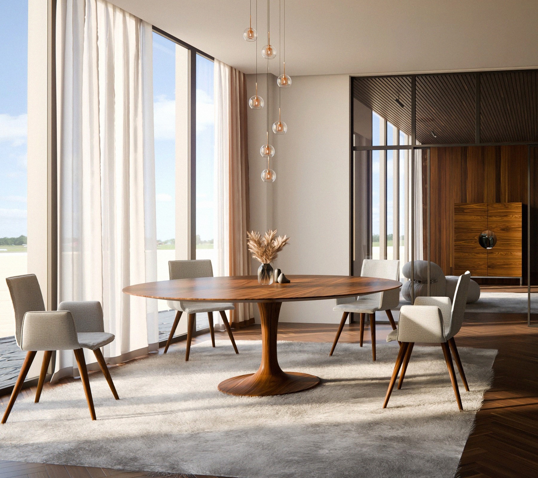 Luxus Esstisch rund aus Massivholz Tulpe