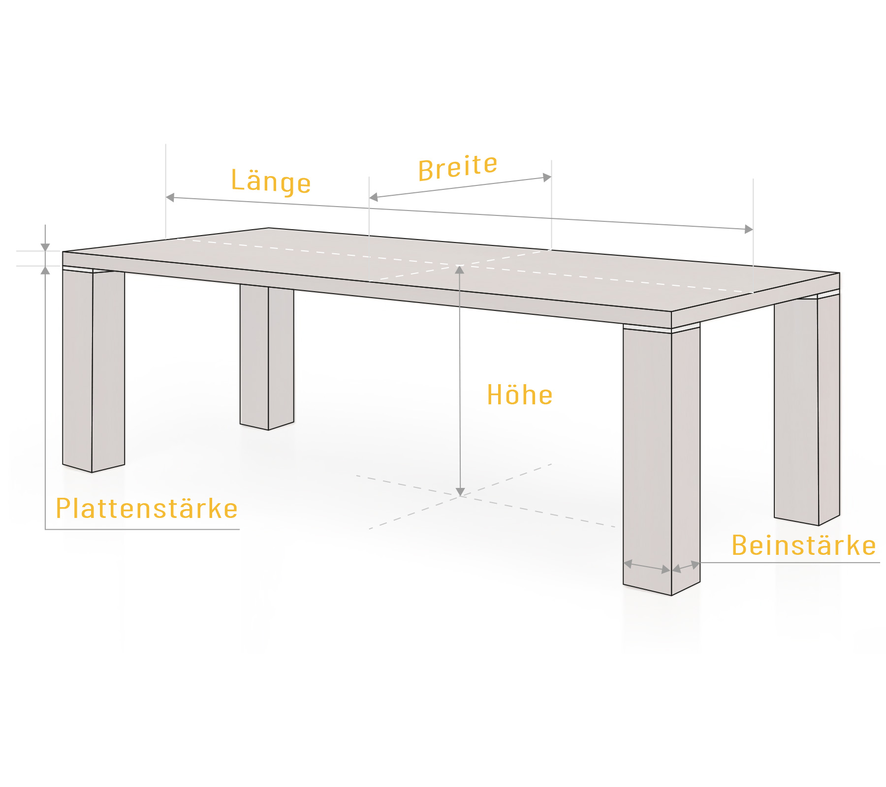 Die erlesene Tischplatte steht dabei im Einklang mit den starken Tischbeinen und behält das Gleichgewicht: Kein Kippeln, kein Wackeln oder Schwanken. Edle Akzente aus Edelstahl werten den Esstisch besonders auf und geben Ihm seinen modernen Charme. Saubere Linien und eine fühlbare Holzstruktur sind sein Geheimnis von Perfektion und Maßarbeit, damit setzt er ein echtes Design-Statement! Bestimmen Sie Ihre passenden Maße: Breite, Tiefe und Höhe in unserem Konfigurator.