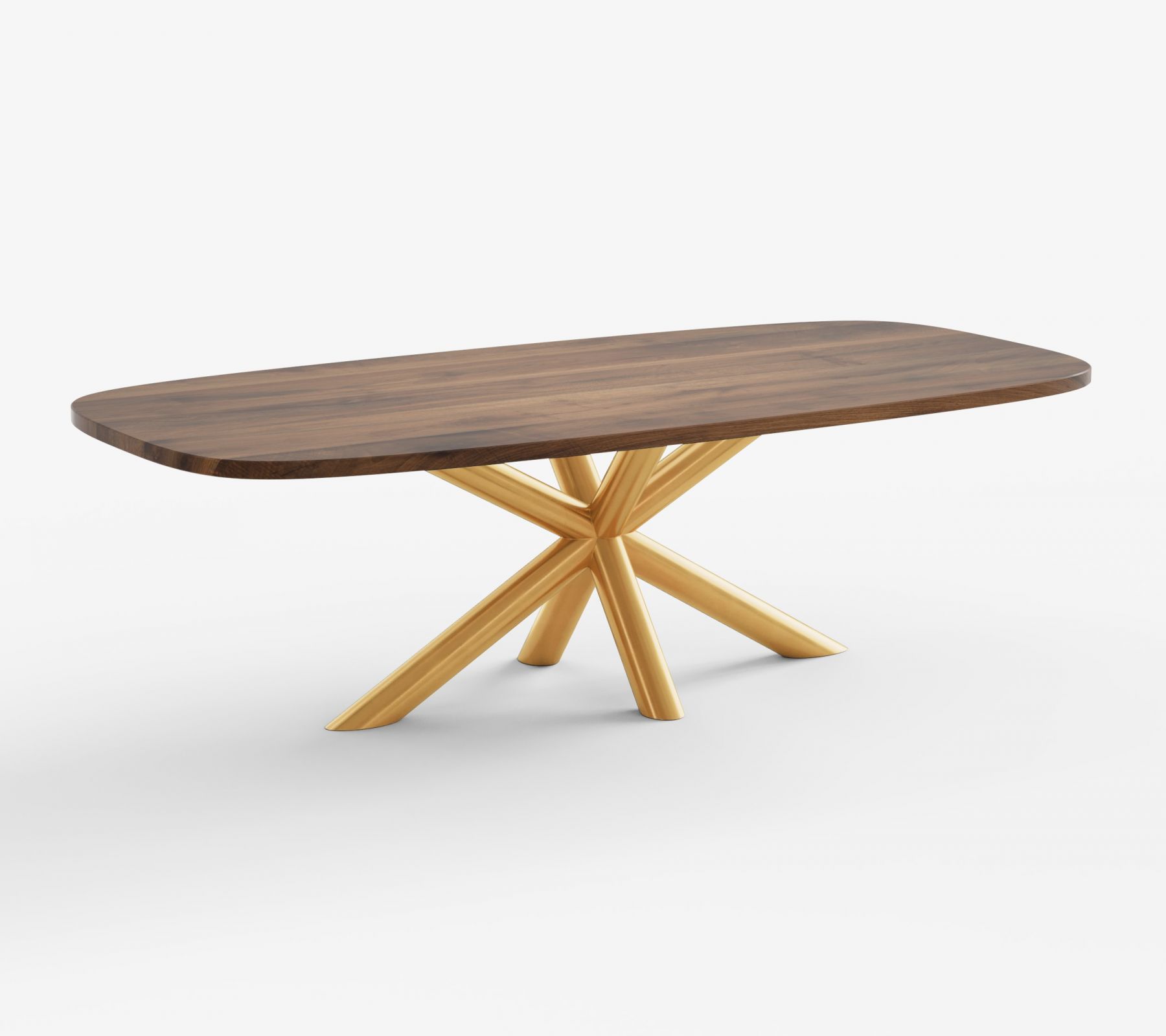 Stilvoll Wohnen ist so einfach! Dank des ungewöhnlichen Designertisches Kingston mit dem aufwendig gearbeiteten Tischgestell in Sternform wird Ihr Wohnbereich erfrischt und belebt. Der Esstisch ist der Mittelpunkt in fast jeder Familie - es werden gemeinsam Mahlzeiten eingenommen, Hausaufgaben erledigt oder Gäste empfangen. Zu Ihrem Vorteil können Sie in unserem Onlineshop Ihren Esstisch genau an Ihre Wünsche anpassen. Durch die Auswahl Ihres Lieblingsholzes, die Angabe Ihrer Wunschmaße und die Konfiguration beinah unzähliger Anpassungsmöglichkeiten wird dieser robuste Massivholztisch zum attraktiven Unikat. Dieser Esstisch distanziert ganz klar von langweiliger und monotoner Massenfertigung. Produktbilder können von Ihrer Konfiguration abweichen, da nicht alle Parameter abgebildet werden können. Zur besseren Vorstellung fordern Sie bitte eine Visualisierung an.
