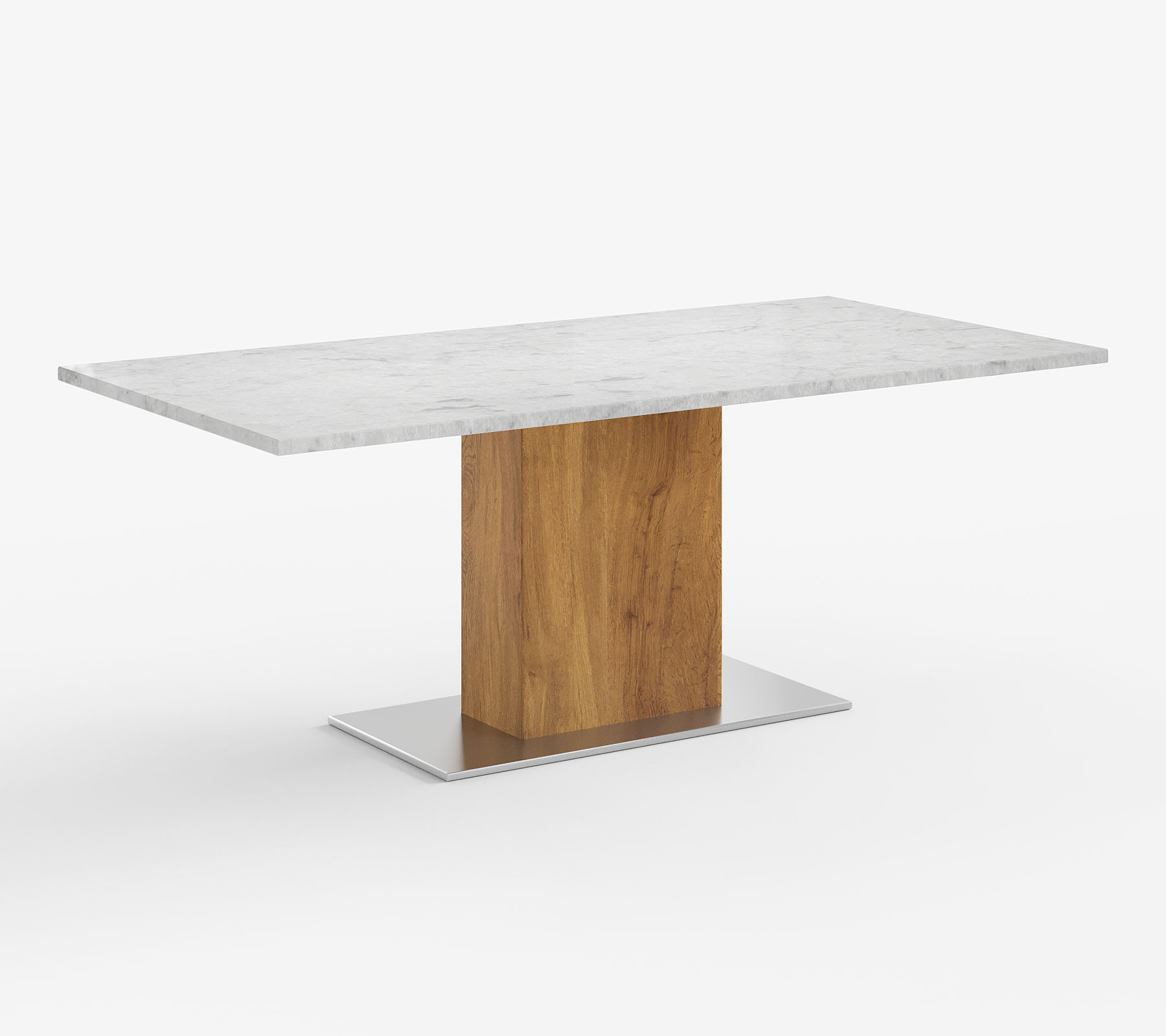 Säulentisch Premium Marmor Tischplatte und Mittelfuß aus Holz Dublin