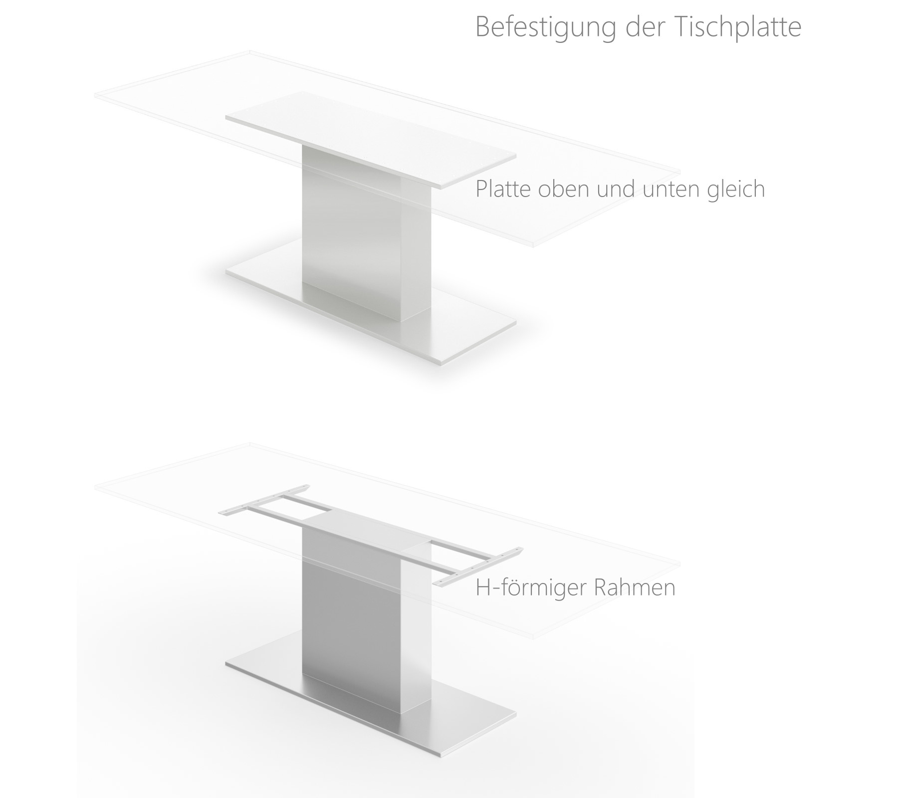 - Länge Gestell: von 30 bis 400 cm (mindestens 50 % der Tischplattenlänge)