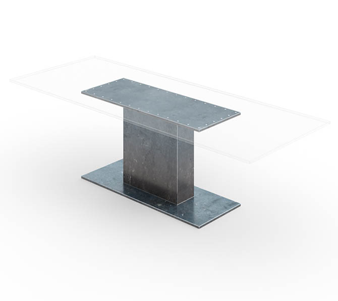 Das Tischgestell Kilkenny aus massivem Stahl oder Edelstahl vermittelt jedem Raum eine besondere Stärke. Die Säule wird mit der Bodenplatte fest verschweißt. Ein massives Metallgestell für eine mächtige und stabile Optik ist ideal für Liebhaber des modernen Designs. Das designte Untergestell können Sie ganz nach Ihren Wünschen konfigurieren. Die Länge der Bodenplatte sollte mindestens halb so groß sein wie die Tischplatte. Nur so kann eine stabile Konstruktion gewährleistet sein. Mit unserem Modell Kilkenny haben Sie einen treuen Begleiter für die nächsten Jahre gefunden. Das robuste Stahlgestell bildet einen gelungenen Kontrast zu einer massiven Holzplatte. Es ist natürlich auch möglich, das Tischbein in einer Wunschfarbe zu lackieren oder mit Gold, Kupfer oder Silber veredeln zu lassen.