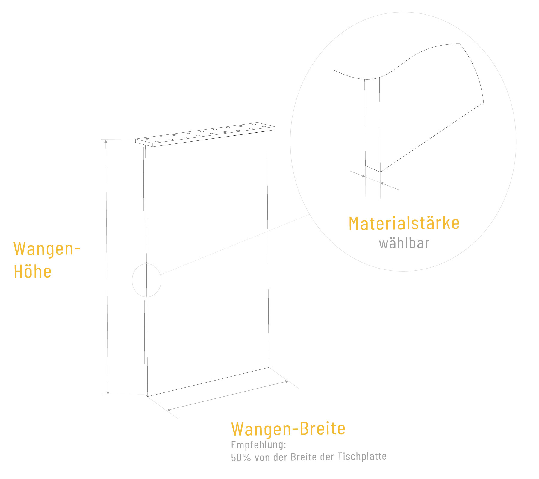 Um die richtige Höhe des Tischgestells zu bestimmen, zieht man im Normalfall die Stärke der Tischplatte von der gewünschten Höhe des Tisches ab.