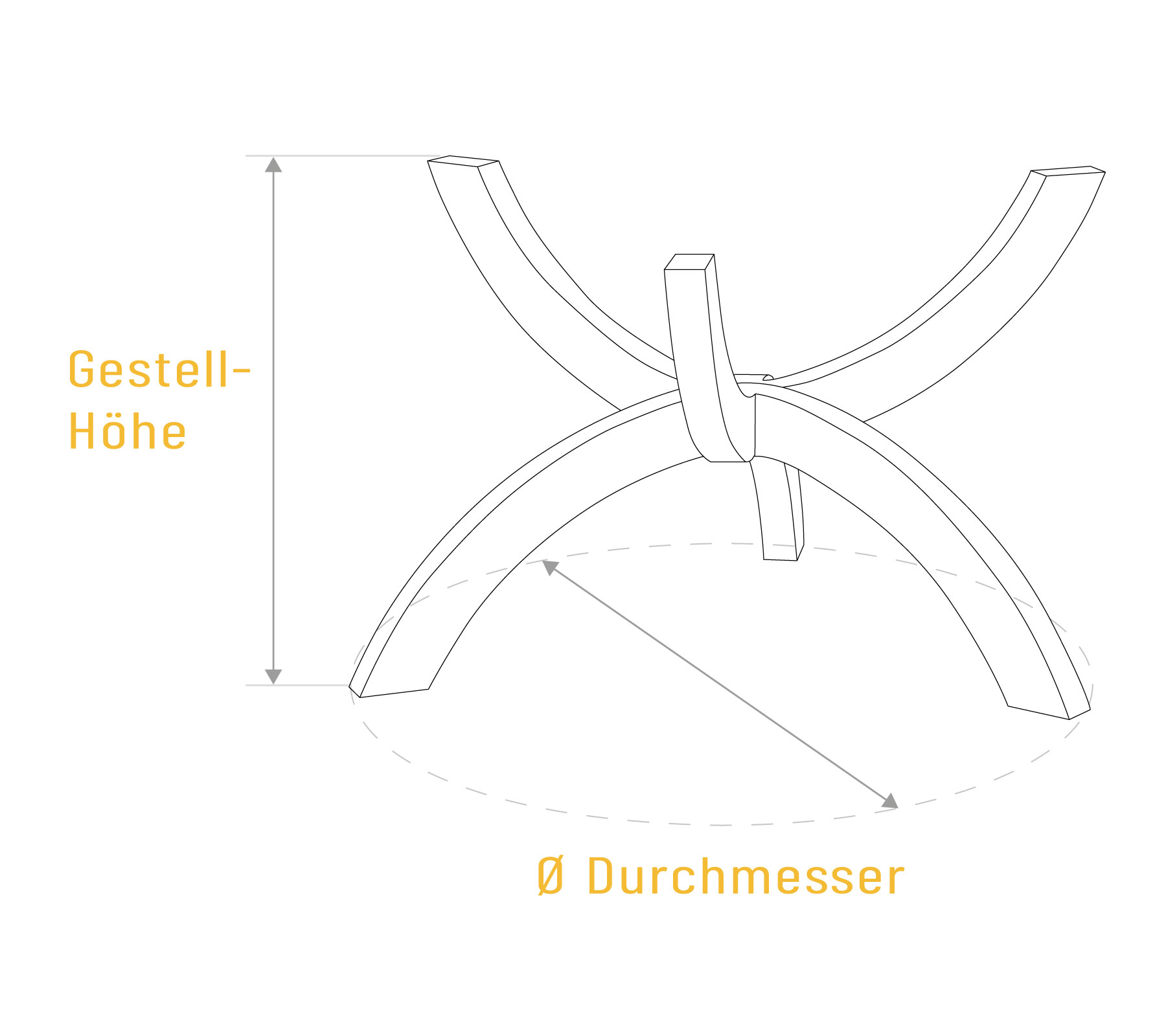 - Durchmesser Gestell: von 60 bis 160 cm