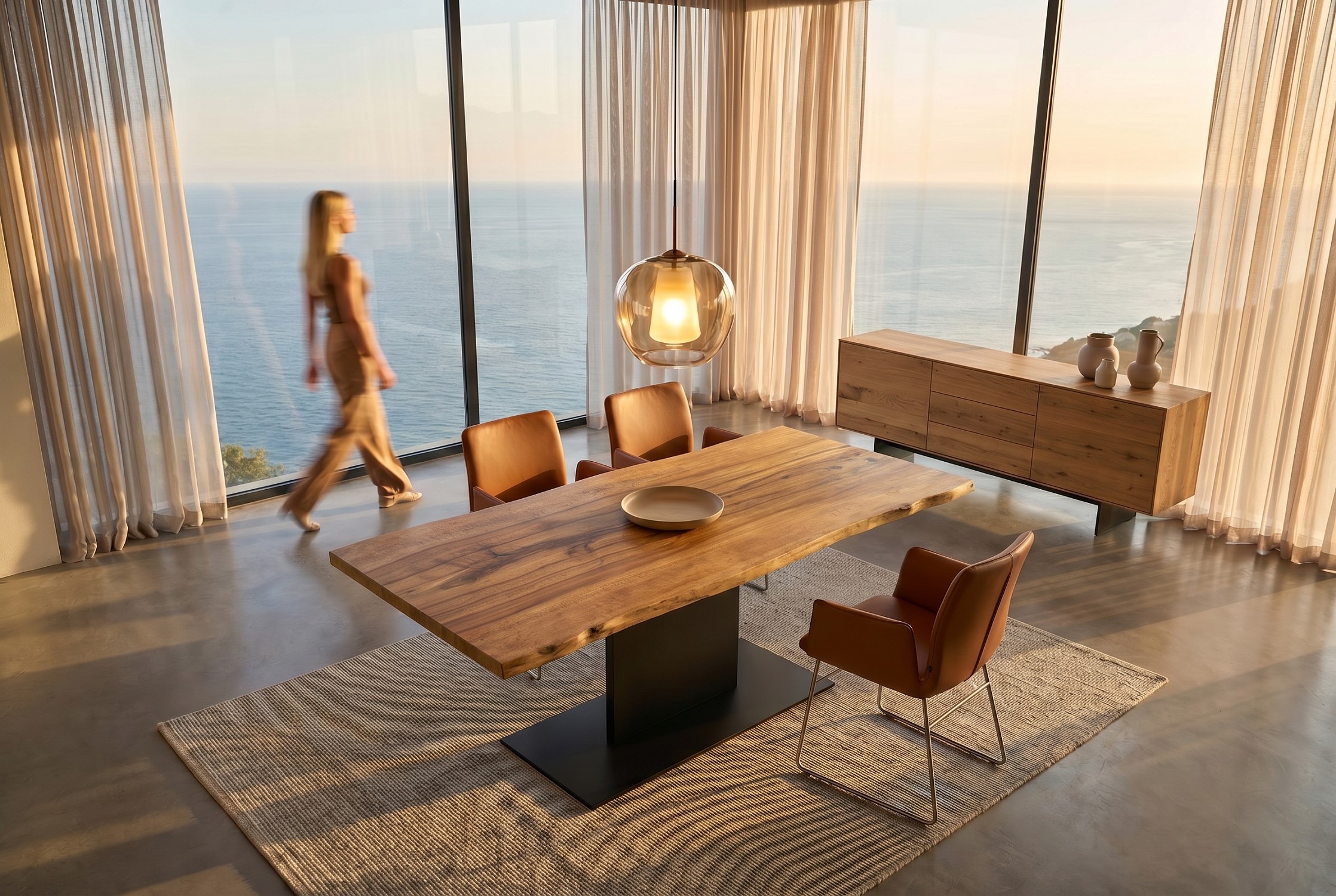 Holz ist ein Naturprodukt. Farbabweichungen, unterschiedliche Maserungen und natürliche Strukturen sind bei einer Tischplatte aus Massivholz normal. Genau diese Merkmale machen jede Platte einzigartig.