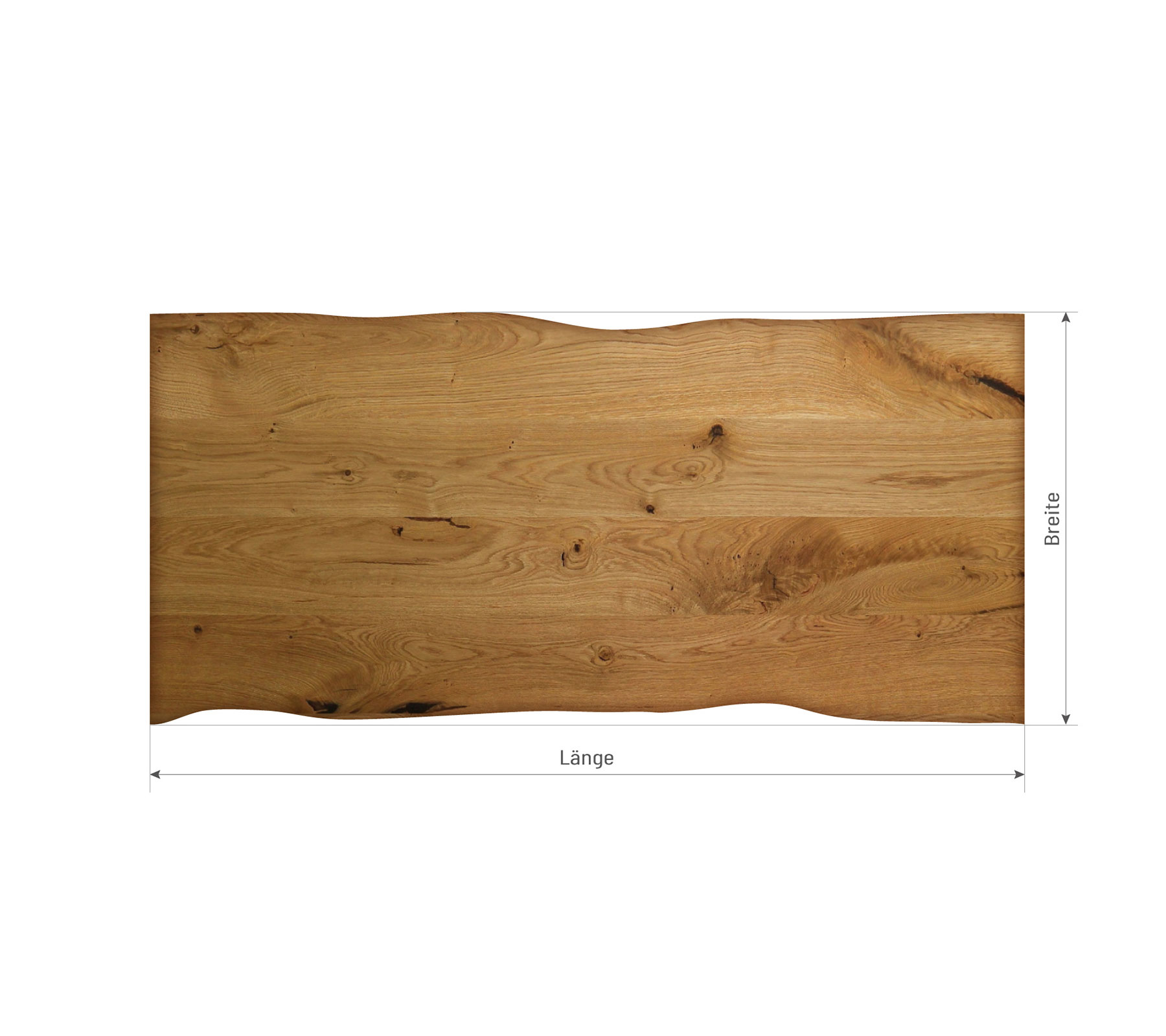 Tischplatte in Ihrem Wunschmaß aus Massivholz mit Baumkante